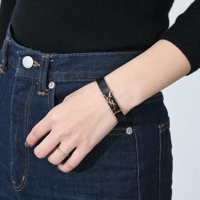 【P5倍&2人に1人全額ポイントバックのチャンス!】SAINT LAURENT サンローラン イブサンローラン ブレスレット アクセサリー YSL Logo 7088150IH0C レディース BLACK ブラック ゴールド レザー バングル ロゴ 人気 おすすめ プレゼント