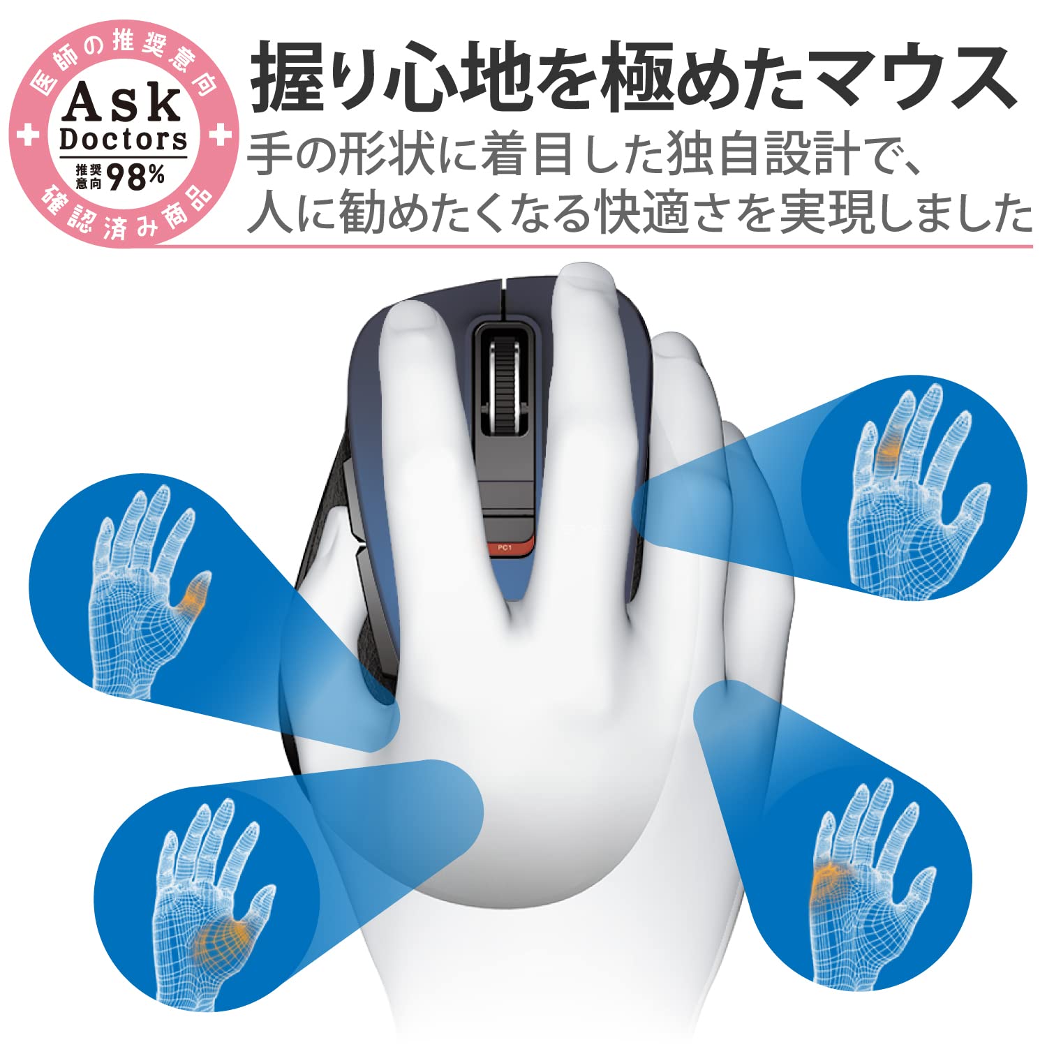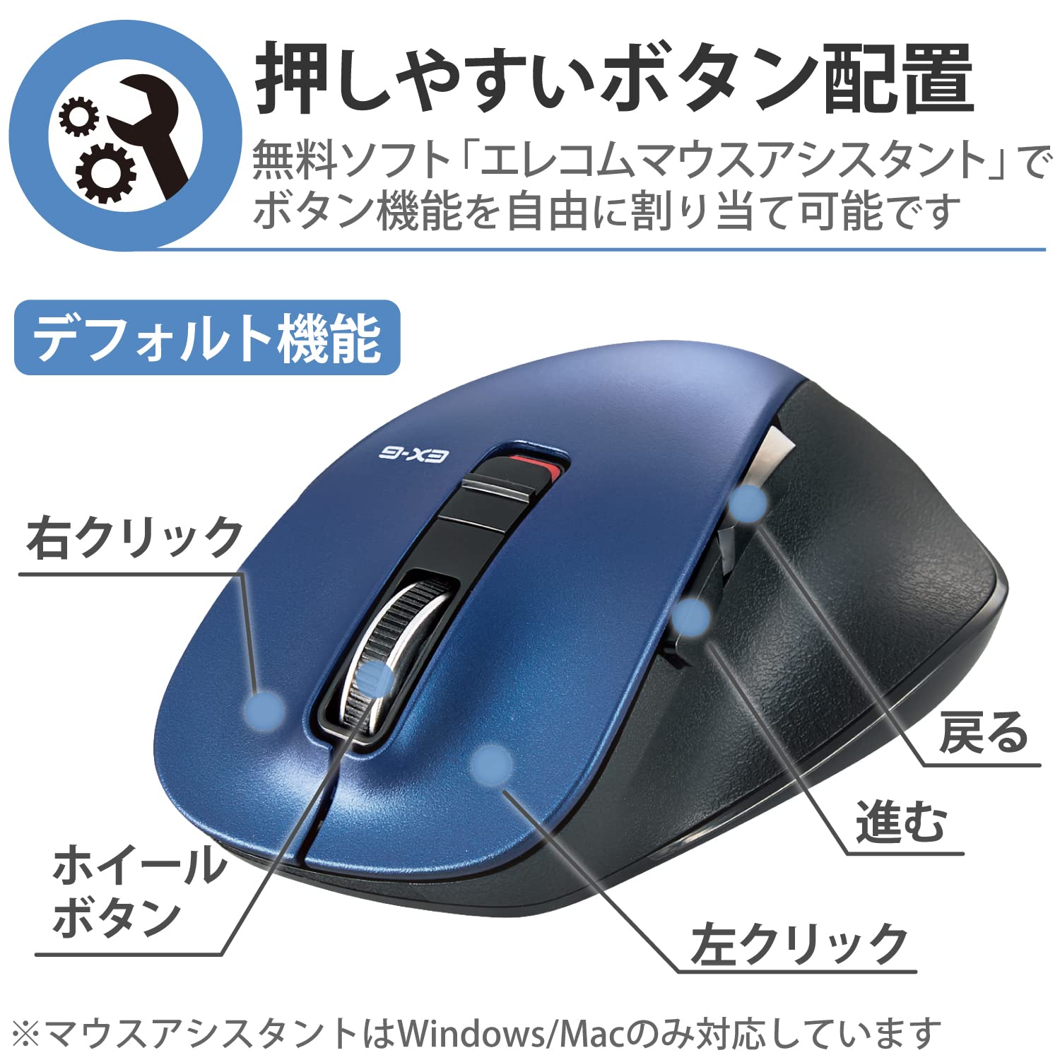 エレコム ワイヤレスマウス Bluetooth EX-G 握りの極み 静音設計 5ボタン マルチペアリング Mサイズ ブルー M-XGM15BBSBU